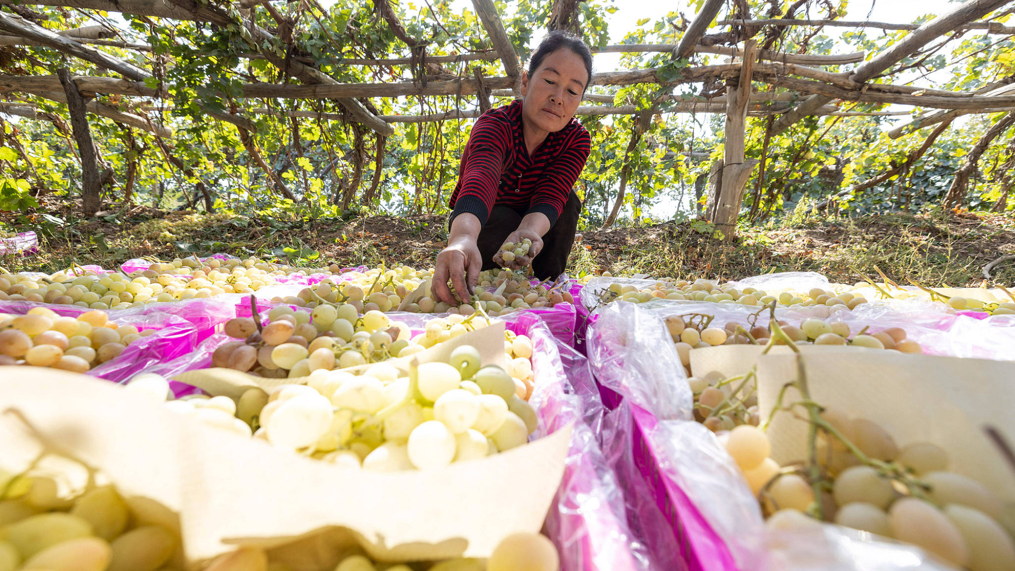 शीत ऋतु के आगमन के साथ, चीन के शिनजियांग के कुका शहर के अकबुया गाँव में लगाए गए 26.67 हेक्टर अंगूरों की फसल में भारी वृद्धि हुई है। प्रति म्यू औसत उपज 1,500 किलोग्राम तक पहुँच गई है। प्रतिदिन लगभग तीन टन ताज़े अंगूरों की कटाई के साथ, अंगूर की खेती एक महत्वपूर्ण उद्योग बन गई है जो स्थानीय लोगों की आय में वृद्धि और समृद्धि को बढ़ावा दे रही है।