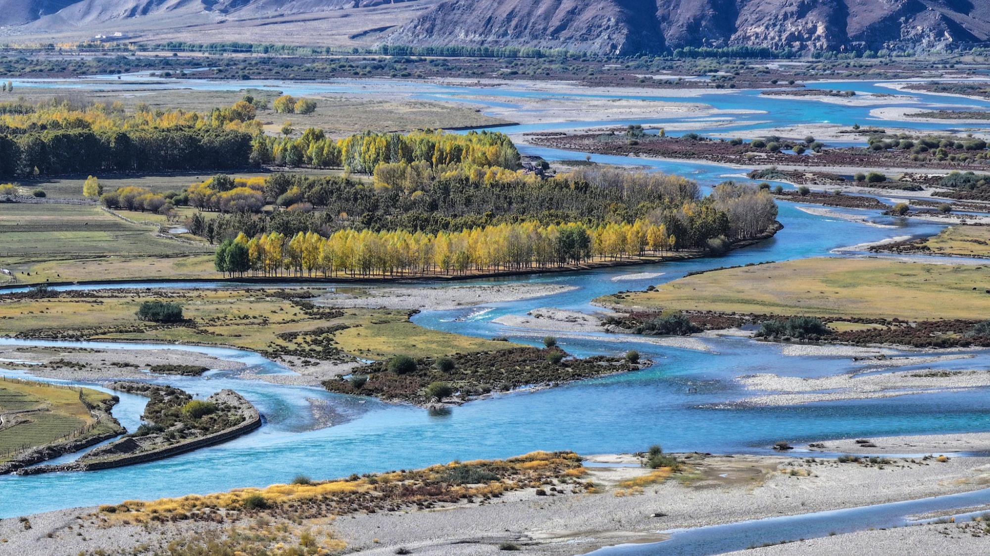 चीन के शीत्सांग(तिब्बत) स्वायत्त प्रदेश के ल्हासा में ल्हासा नदी के दोनों किनारों पर पतझड़ अपने चरम पर होता है। नीले आकाश और सफ़ेद बादलों की पृष्ठभूमि में साफ़ पानी एक मनोरम दृश्य प्रस्तुत करता है।