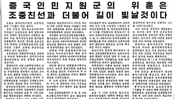 कोरिया युद्ध में चीनी पीपुल्स वालंटियर आर्मी के प्रवेश की 75वीं वर्षगांठ पर एक विशेष स्मारक लेख प्रकाशित