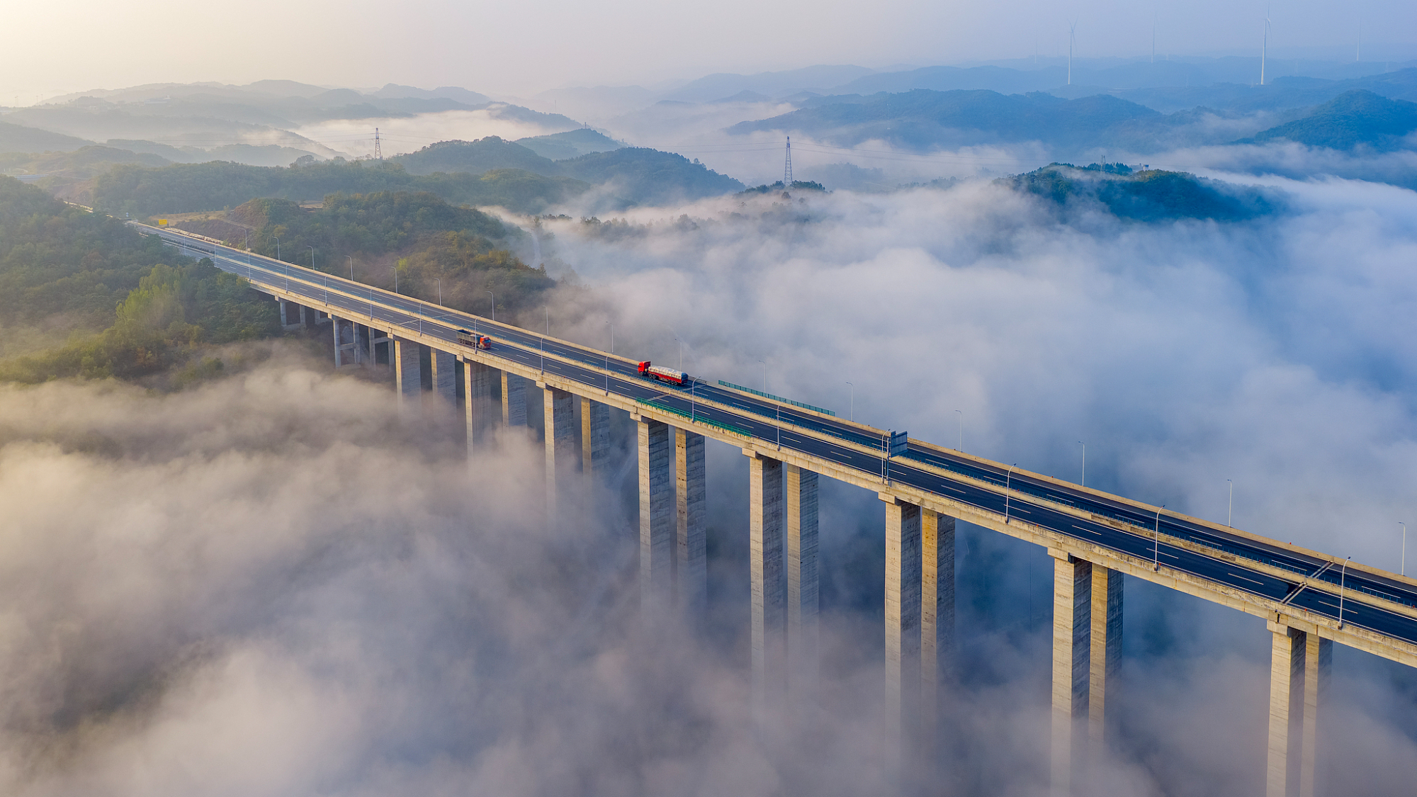 मध्य चीन में श्याओलांगती बांध पर एक्सप्रेसवे का पुल बादलों के सागर में लिपट गया