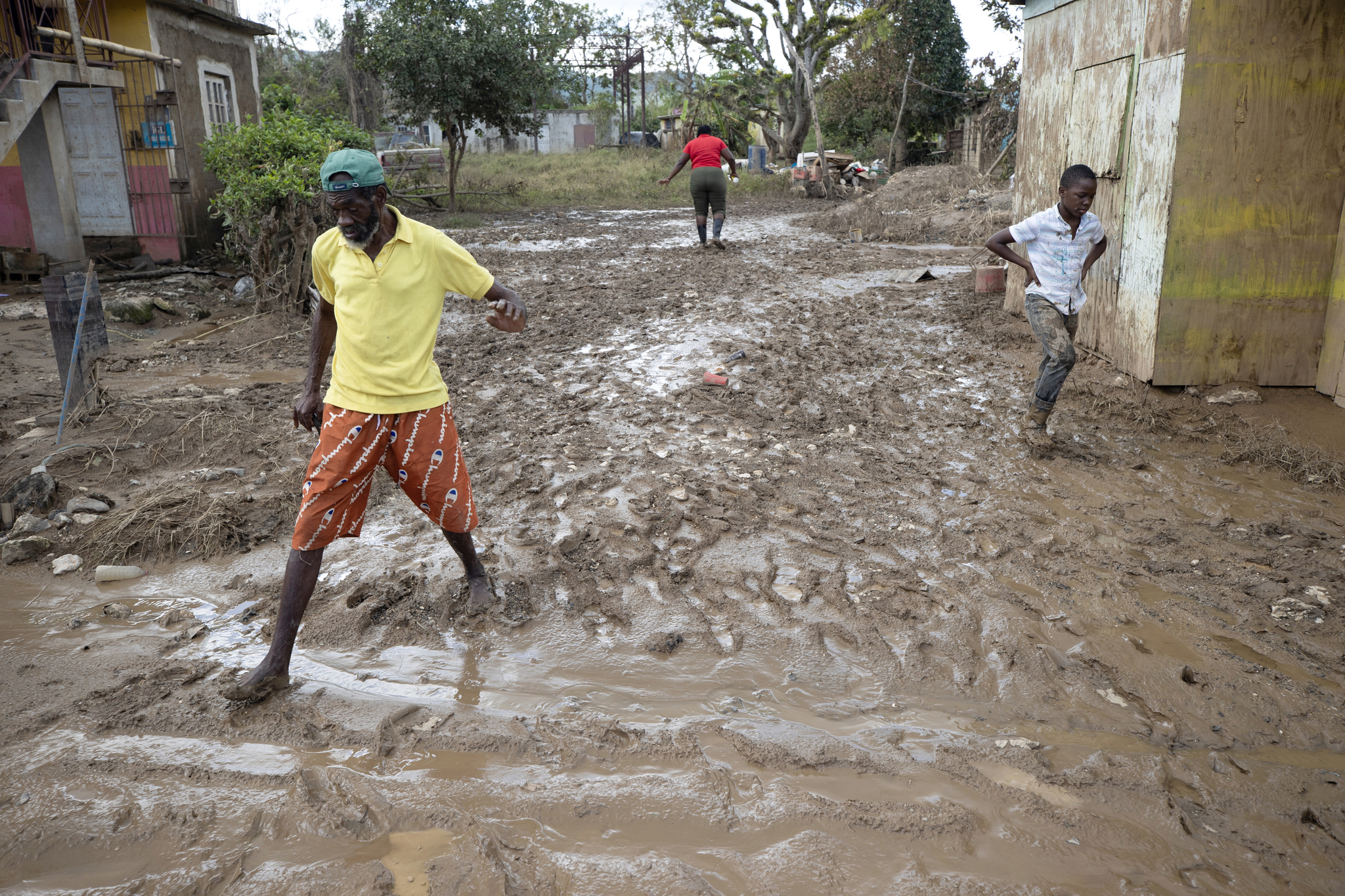 तूफान मेलिसा के कारण जमैका के केव वैली नामक पहाड़ी गाँव में बाढ़ आ गई, जिससे कई घरों की दूसरी मंजिलें अभी भी कीचड़ से ढकी हुई हैं। स्थानीय निवासी नुकसान को कम करने के लिए अपने घरों और सामानों की सफाई कर रहे हैं।