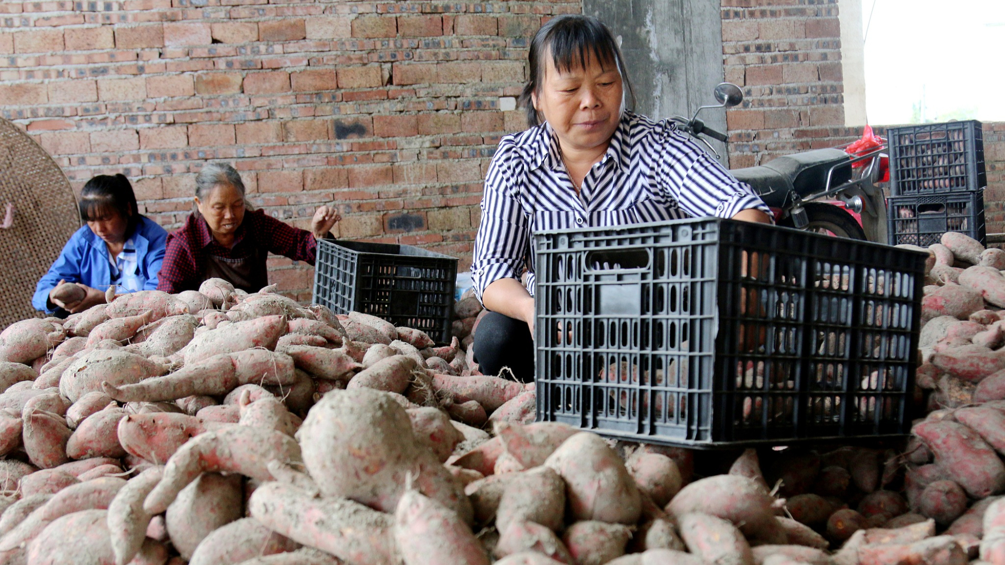 चीन के जियांग्शी प्रांत के सुईछुआन शहर में शकरकंद की फसल