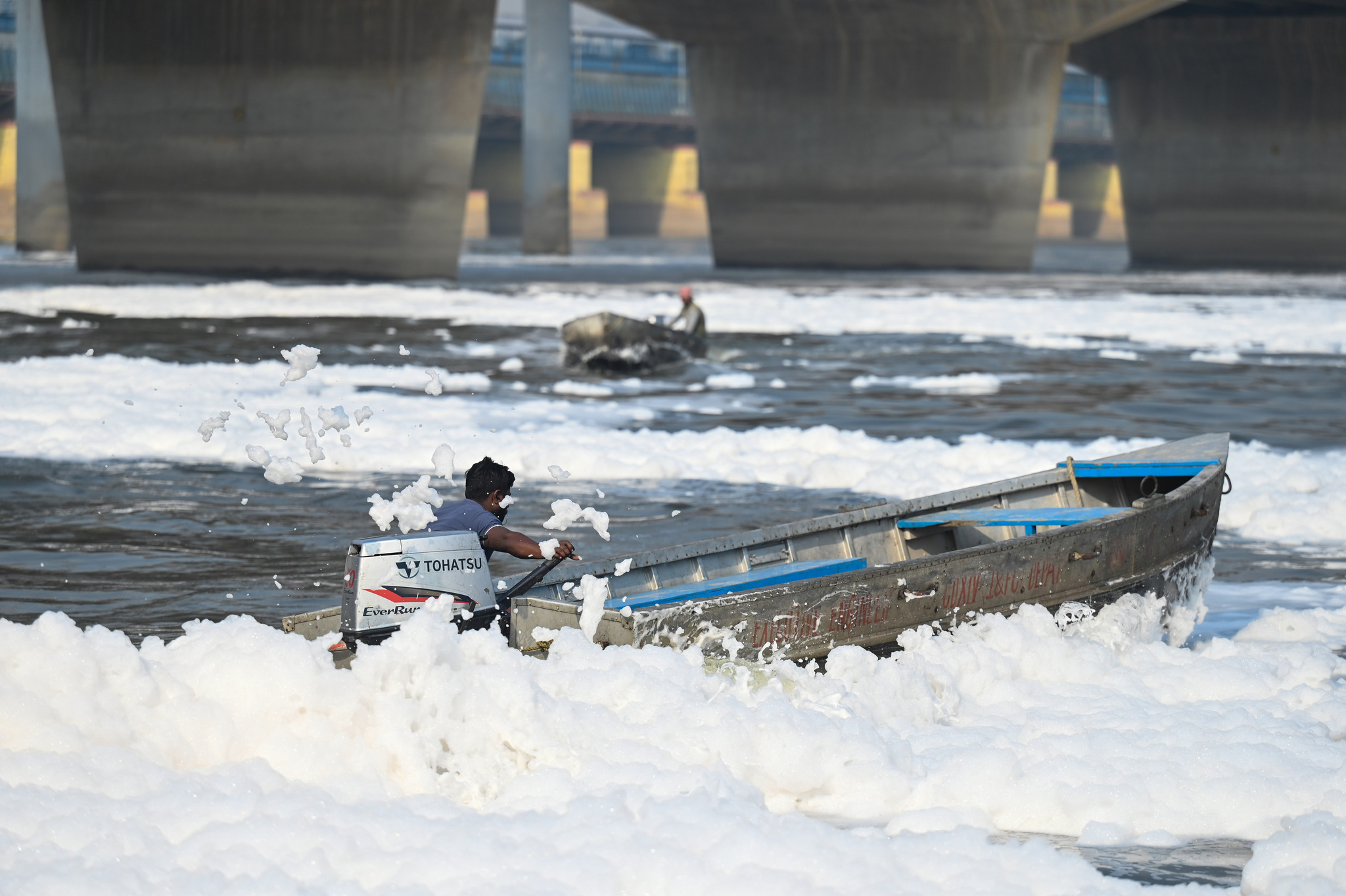 नदी में छोड़े जाने वाले सीवेज और औद्योगिक अपशिष्ट जल में अमोनिया और फॉस्फेट की अत्यधिक मात्रा के कारण, यमुना नदी के कुछ हिस्सों में सफेद, तीखा झाग बन रहा है।