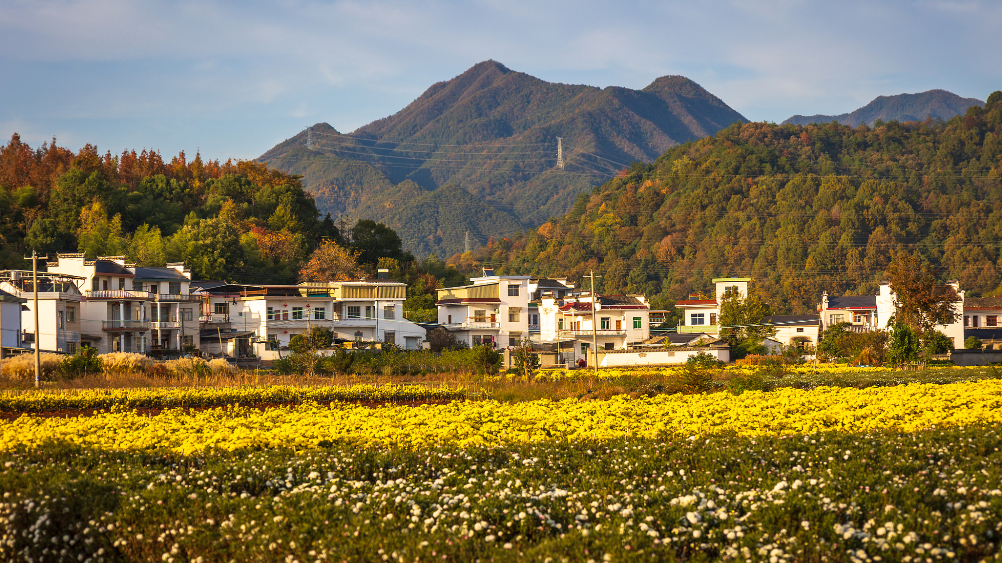 ग्रामीण क्षेत्र गुलदाउदी की खुशबू से भरा हुआ है, जो सुनहरे पीले रंग का समुद्र लग रहा है