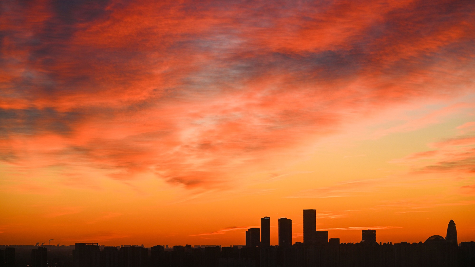 आज सुबह के समय पेइचिंग में आग जैसे बादल छाये दिखे।
