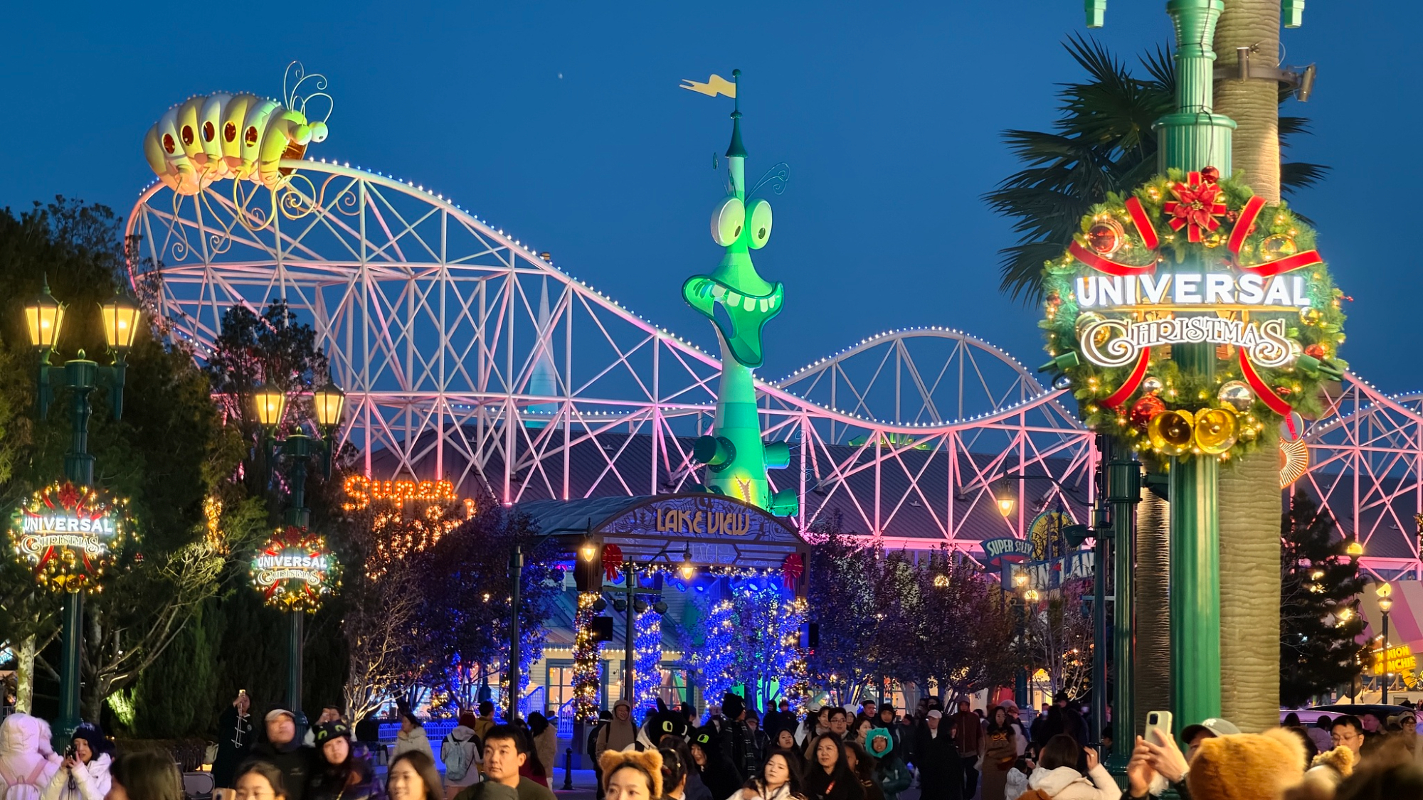 पेइचिंग यूनिवर्सल रिज़ॉर्ट को क्रिसमस के लिए सजाया गया है।