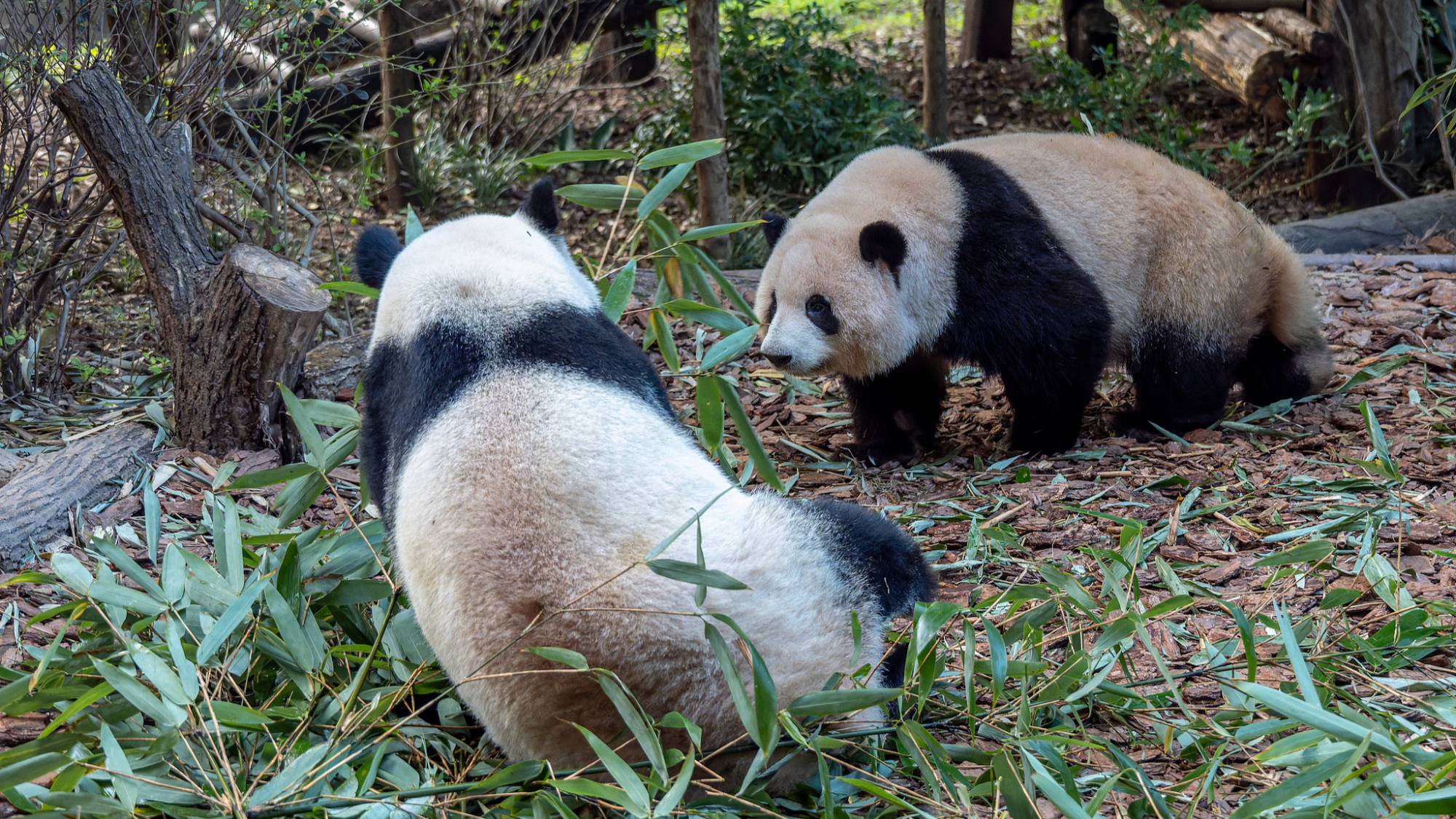 चीन के सिचुआन प्रांत के छेंगदू शहर में आराम से खाना खाते पांडा।
