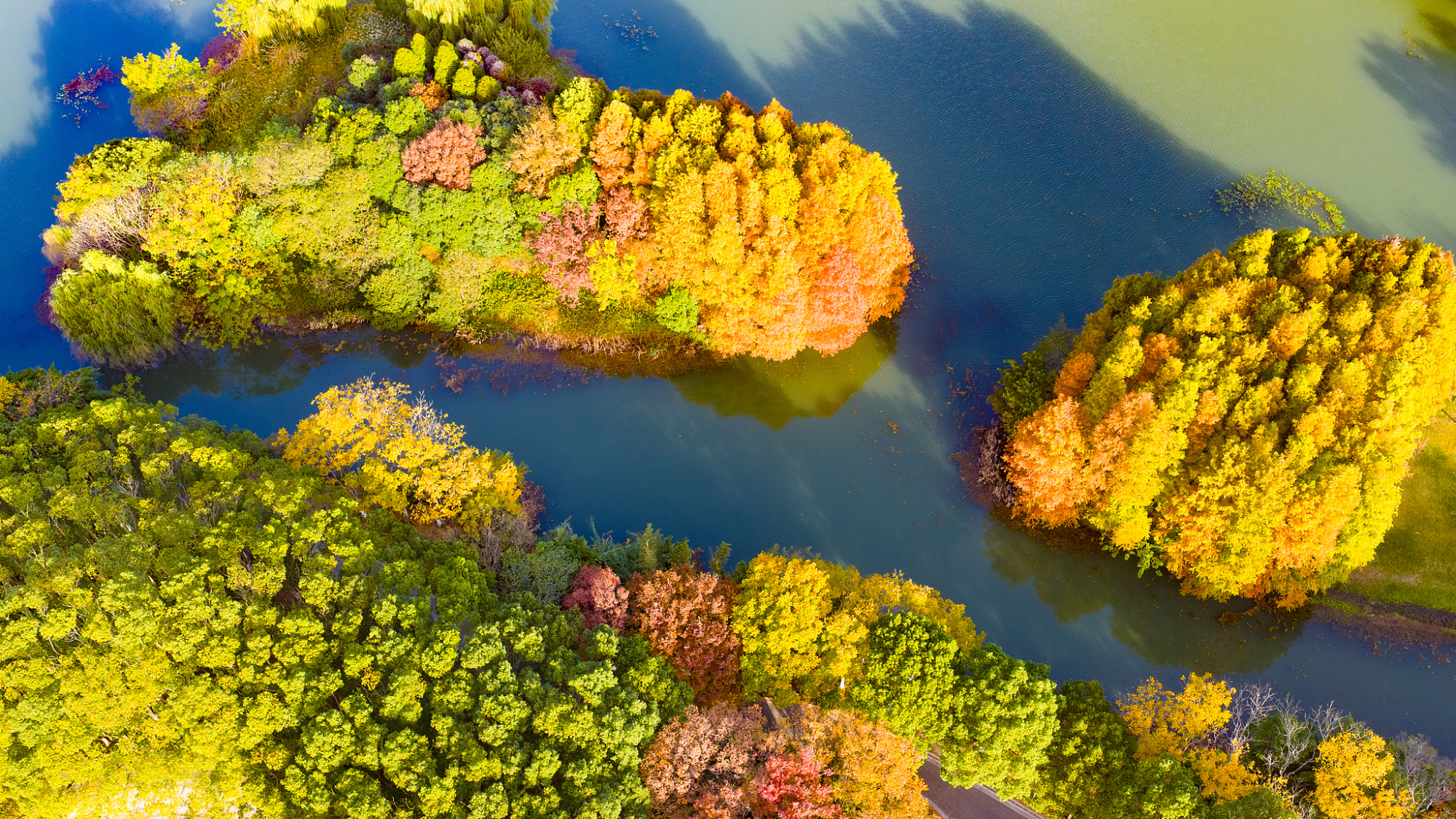 चीन के ज्यांग्सू प्रांत के सूचो शहर का थियानफू नेशनल वेटलैंड पार्क रंग-बिरंगे पत्तों से जगमगा रहा है।