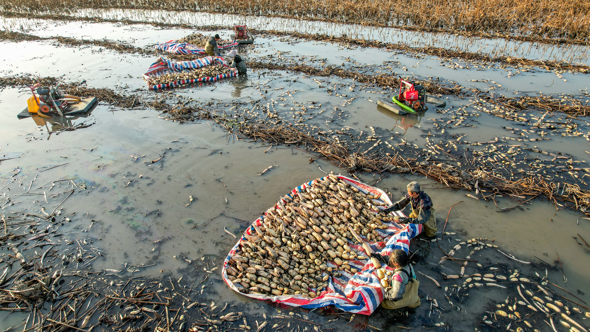 हाल ही में, चीन के शांक्सी प्रांत के योंगची शहर में पीली नदी के किनारे हज़ारों एकड़ में कमल की जड़ों की कटाई का मौसम शुरू हो गया है। उत्पादक अच्छे मौसम का फ़ायदा उठाकर कमल की जड़ों की कटाई कर रहे हैं और उन्हें तुरंत चीन भर के बाज़ारों में भेज रहे हैं।