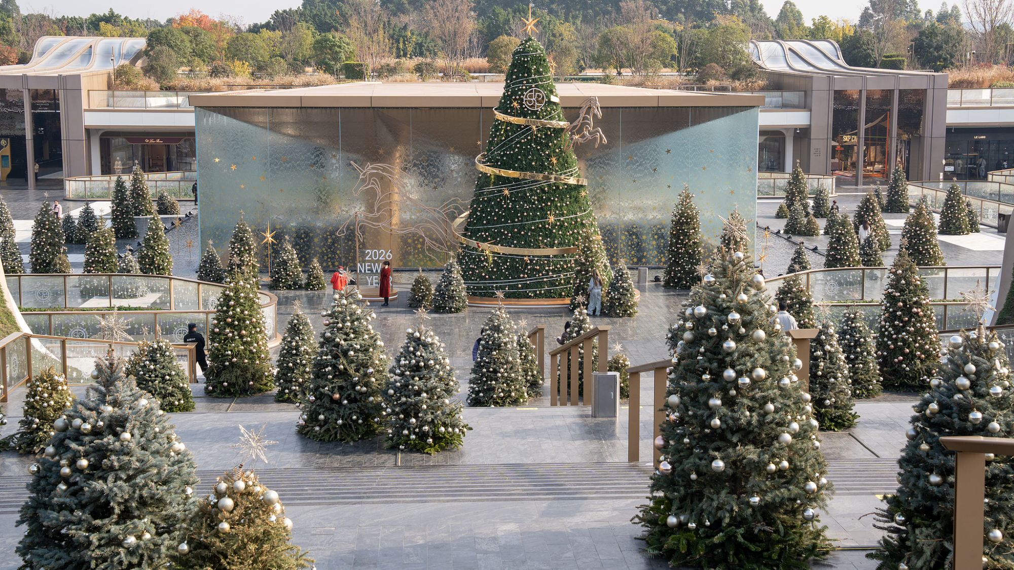 चीन के सछ्वान प्रांत के छंगतू शहर के शॉपिंग मॉल में हर जगह क्रिसमस ट्री दिख रहे हैं