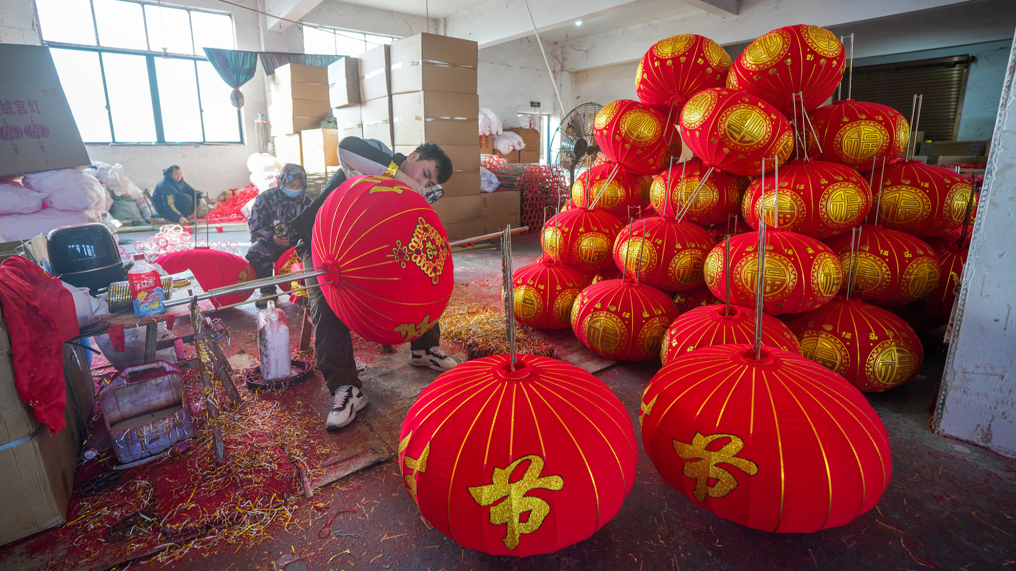 हाल में चीन में लालटेन की बिक्री अपने चरम पर पहुँच चुकी है। लालटेन निर्माता और कार्यशालाएँ बाज़ार की मांग को पूरा करने के लिए विभिन्न शैलियों की लालटेन बनाने में कड़ी मेहनत कर रही हैं। चीन के चेजियांग प्रांत के जिन्हुआ शहर में एक लालटेन कार्यशाला में श्रमिक उत्सव के लिए लालटेन बना रहे हैं और उन्हें सुखा रहे हैं।