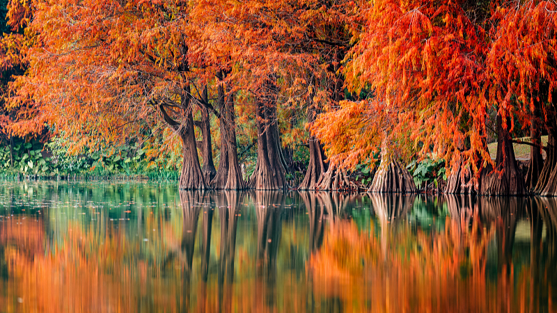 शीत लहर के बाद चीन के क्वांगतोंग प्रान्त की राजधानी क्वांगचो में स्थित दक्षिण चीन राष्ट्रीय वनस्पति उद्यान में बाल्ड साइप्रस के पेड़ों ने अपनी अनूठी सुंदरता से पर्यटकों को मंत्रमुग्ध कर दिया है। लाल और नारंगी रंग की शाखाएँ और पत्तियाँ, शांत झील की सतह पर पड़ते प्रतिबिंब के साथ, किसी सीमित संस्करण की शीतकालीन चित्रकला जैसी प्रतीत होती हैं। यह मनोहर दृश्य बड़ी संख्या में सैलानियों को आकर्षित कर रहा है, जो इन पेड़ों की छटा को कैमरे में कैद करने के लिए रुक जाते हैं।