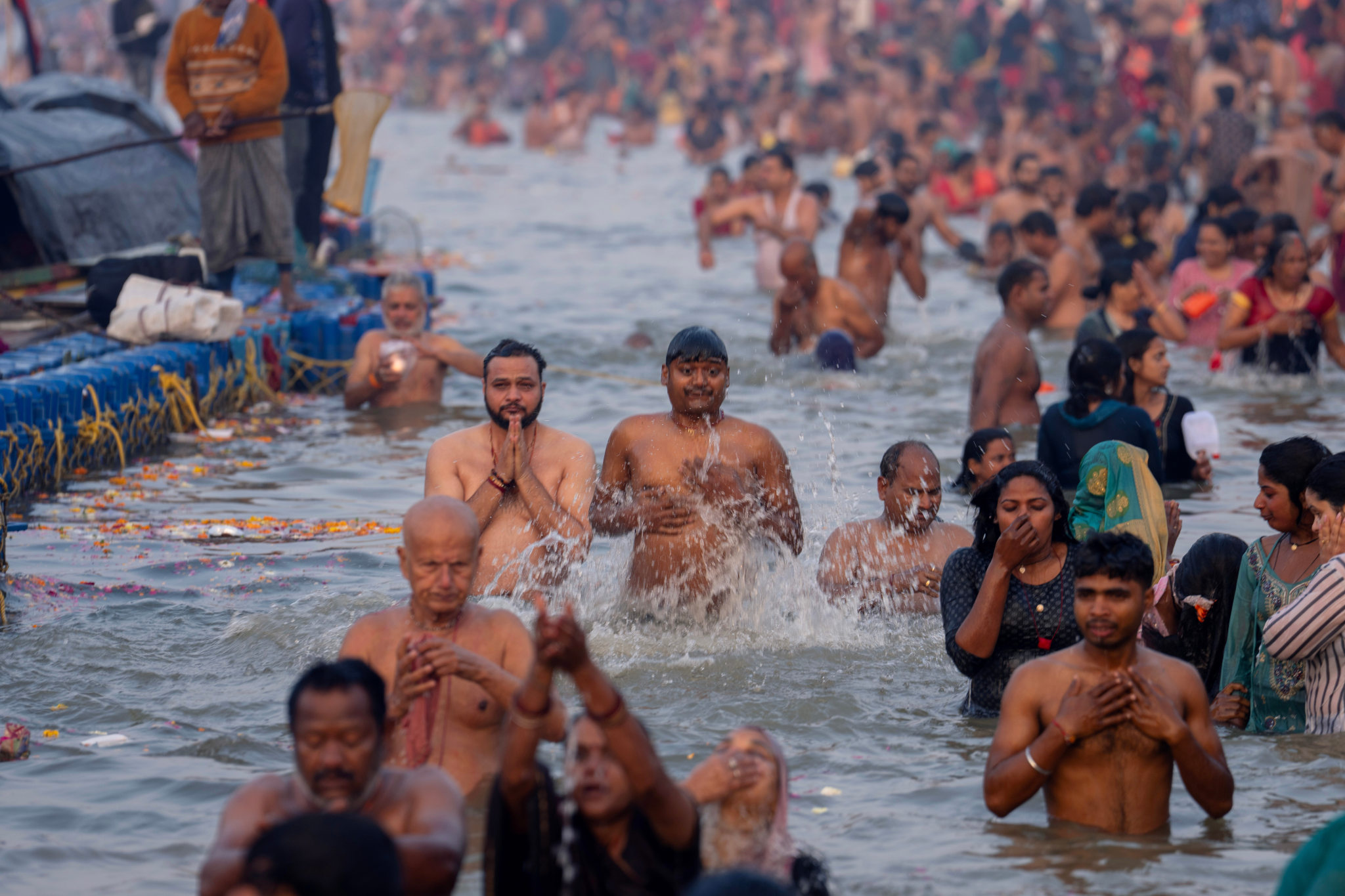 हिंदू भक्त पवित्र स्नान उत्सव में हिस्सा लेते हैं