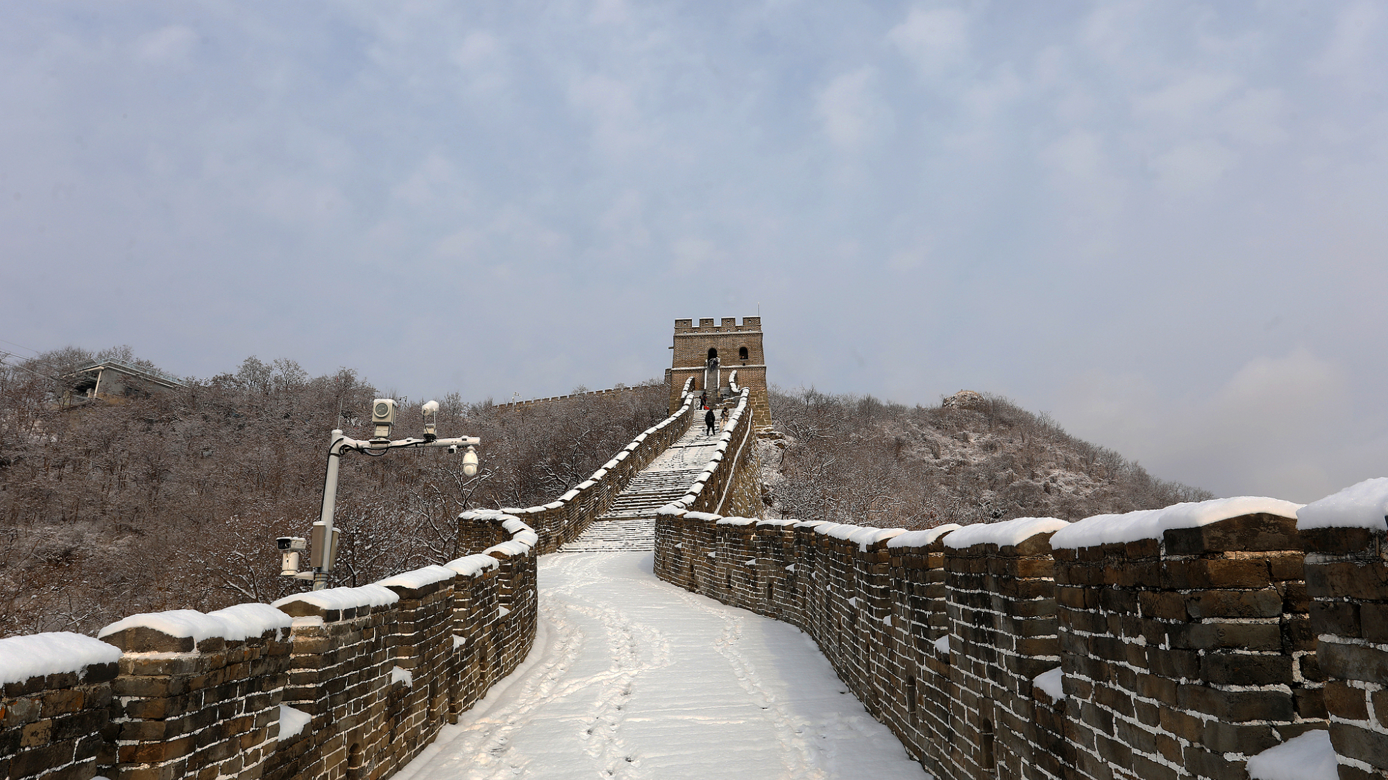 बर्फ़बारी के बाद पेइचिंग में मुतियान्यू ग्रेट वॉल का शानदार नजारा