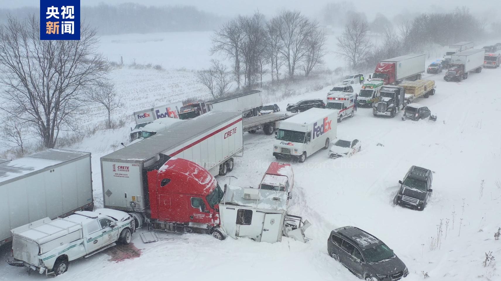 मिशिगन में भारी बर्फबारी की वजह से वाहनों की टक्कर