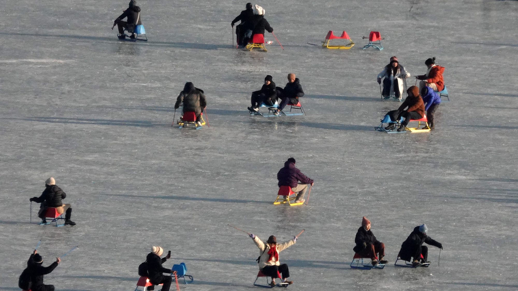 विज़िटर्स से भरा हुआ पेइचिंग के समर पैलेस का आइस रिंक।
