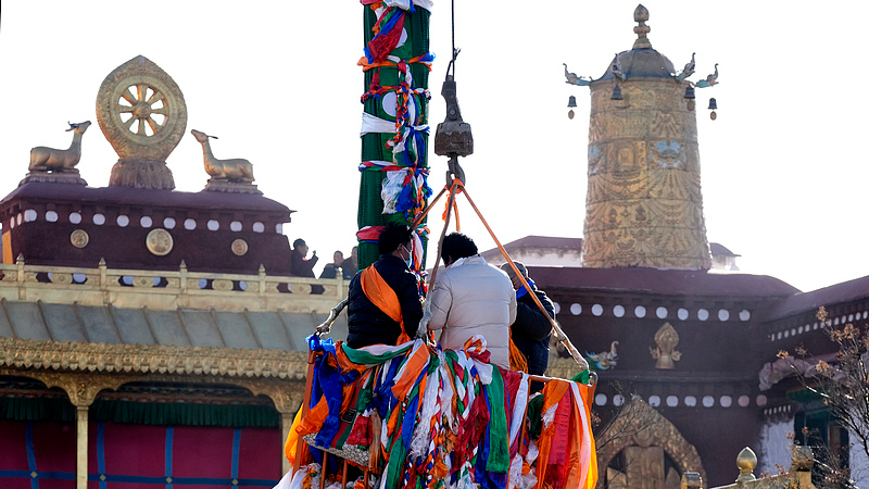 5 फरवरी को, चीन के शीत्सांग(तिब्बत) स्वायत्त प्रदेश की राजधानी ल्हासा के जोखांग मंदिर में, परंपरा का पालन करते हुए, मंदिर के चारों ओर लगे प्रार्थना ध्वज स्तंभों पर लगे प्रार्थना ध्वज बदले गए। ताकि आगामी तिब्बती नव वर्ष की तैयारी की जा सके। श्रद्धालुओं ने पांच रंगों के हाडा (पारंपरिक स्कार्फ) तैयार किए और उन्हें प्रार्थना ध्वज स्तंभों पर अर्पित किया।