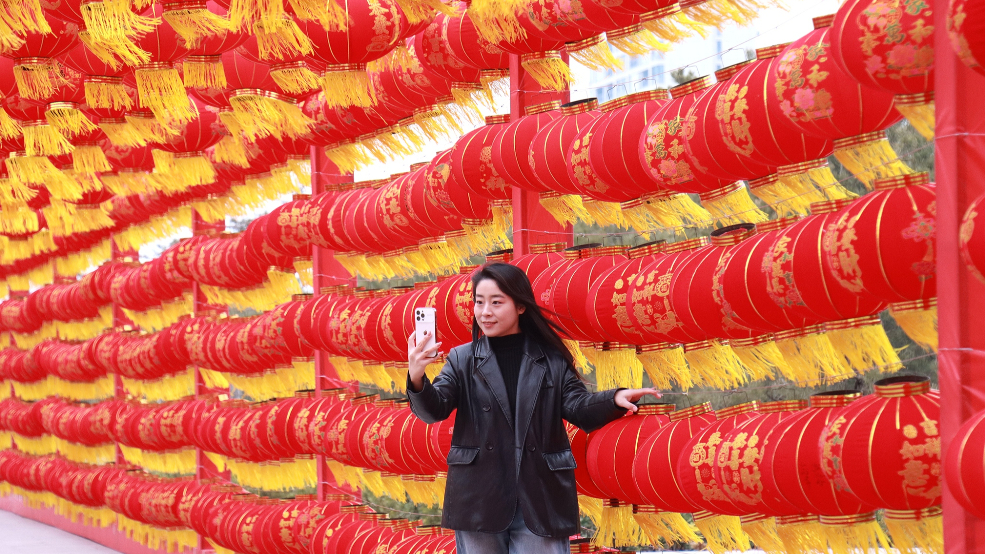 नए साल के स्वागत के लिए लाल लालटेन ऊंची लटकाई गईं।