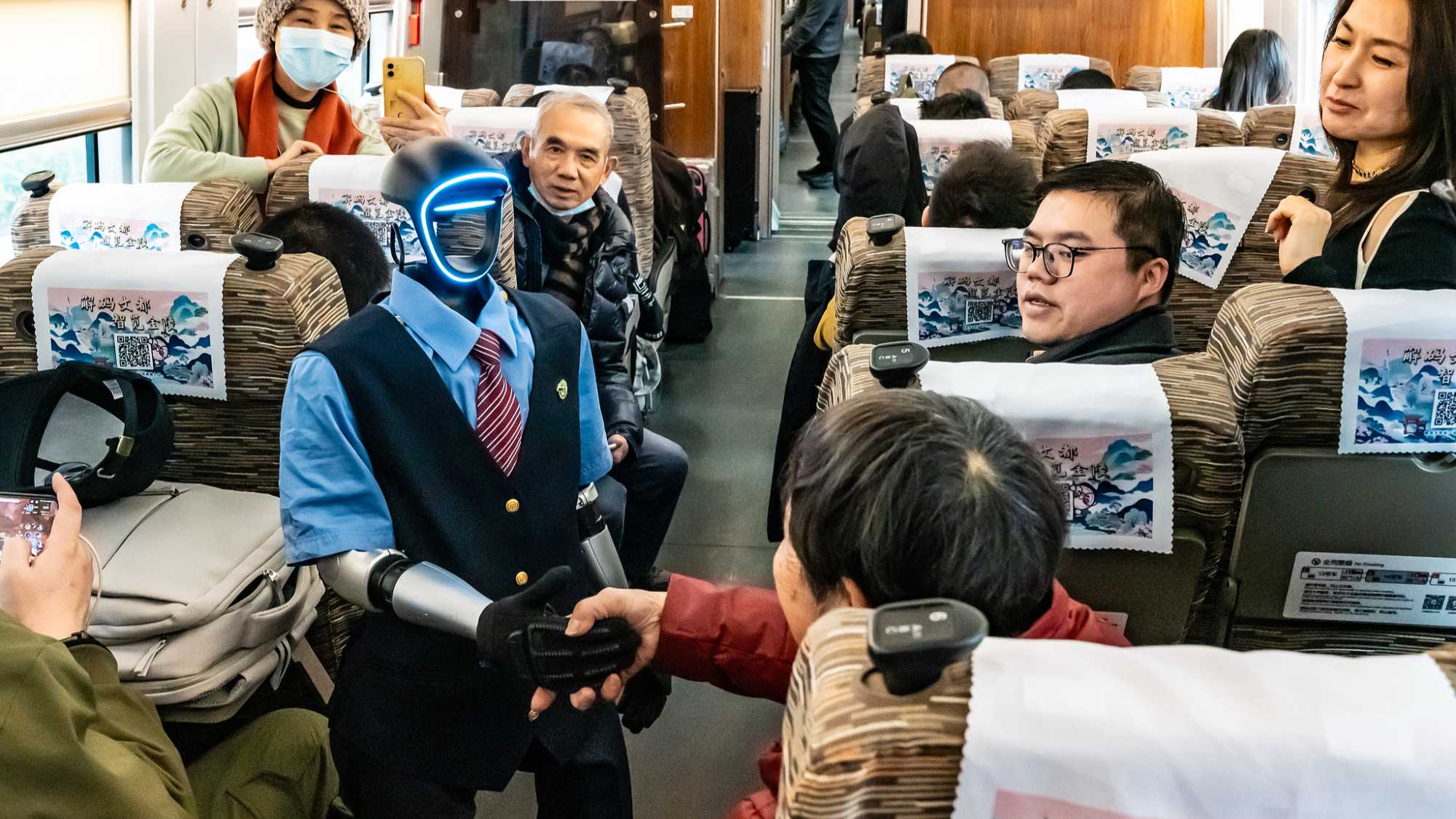 10 फरवरी को रोबोट ट्रेन अटेंडेंट "फूशिंग" ने एक ट्रेन में सवार होकर अपने नए "कार्यदिवस" की शुरुआत की। इस साल चीन के परम्परागत त्योहार वसंत उत्सव की छुट्टियों में यात्रियों की भारी भीड़ के दौरान, "फूशिंग" रोबोट हांगचोऊ रेलवे ट्रेनों में दिखाई देगा, जहां उसने यात्रियों को ट्रेन संबंधी जानकारी और इंटरैक्टिव प्रश्नोत्तर सेवाएं प्रदान कीं। तस्वीर में रोबोट ट्रेन अटेंडेंट "फूशिंग" यात्रियों से बातचीत करते हुए दिखाई दे रहा है।