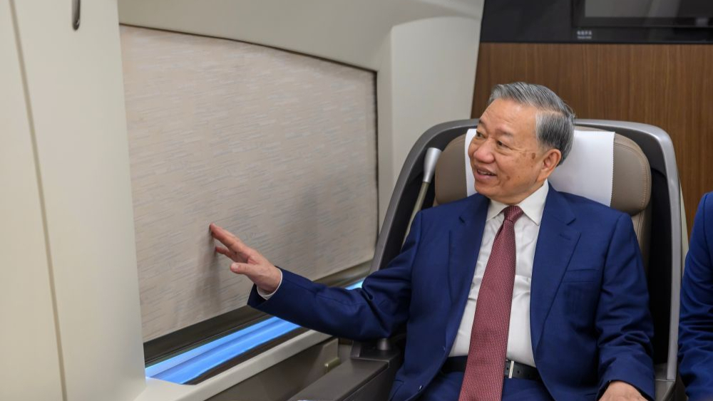 वियतनाम कम्युनिस्ट पार्टी के महासचिव और राष्ट्रपति ने श्योंगआन नये क्षेत्र के दौरे के लिए हाई-स्पीड रेल से यात्रा की