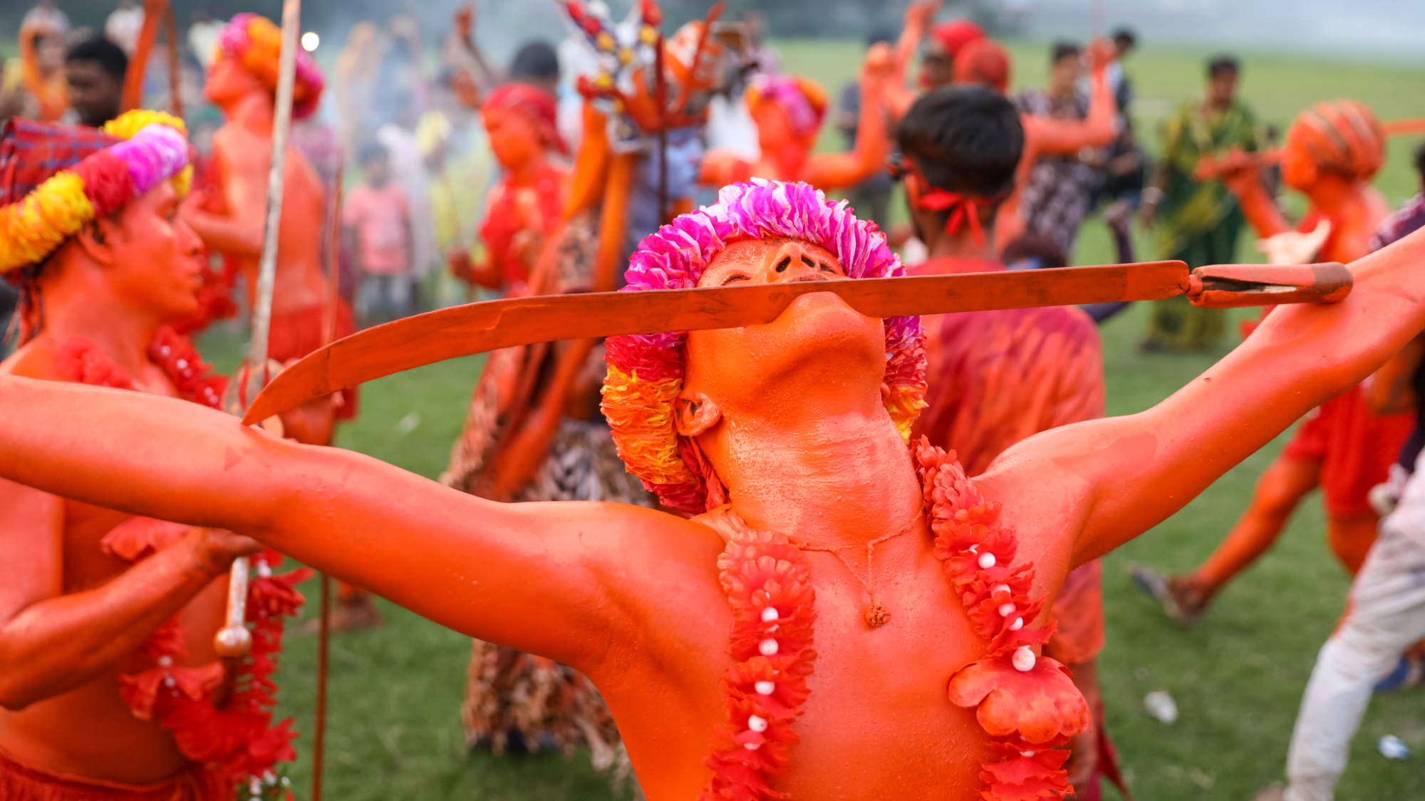 13 अप्रैल को बांग्लादेश के ढाका के मुशीगंज में हिंदू श्रद्धालुओं ने लाल कांच महोत्सव में भाग लिया। यह महोत्सव स्थानीय समुदाय में एक सदी से अधिक समय से चली आ रही परंपरा है, जिसमें हिंदू युवक और पुरुष अपने शरीर पर लाल रंग लगाते हैं और तलवारें लेकर जुलूस में भाग लेते हैं और बंगाली नव वर्ष का स्वागत करते हैं।