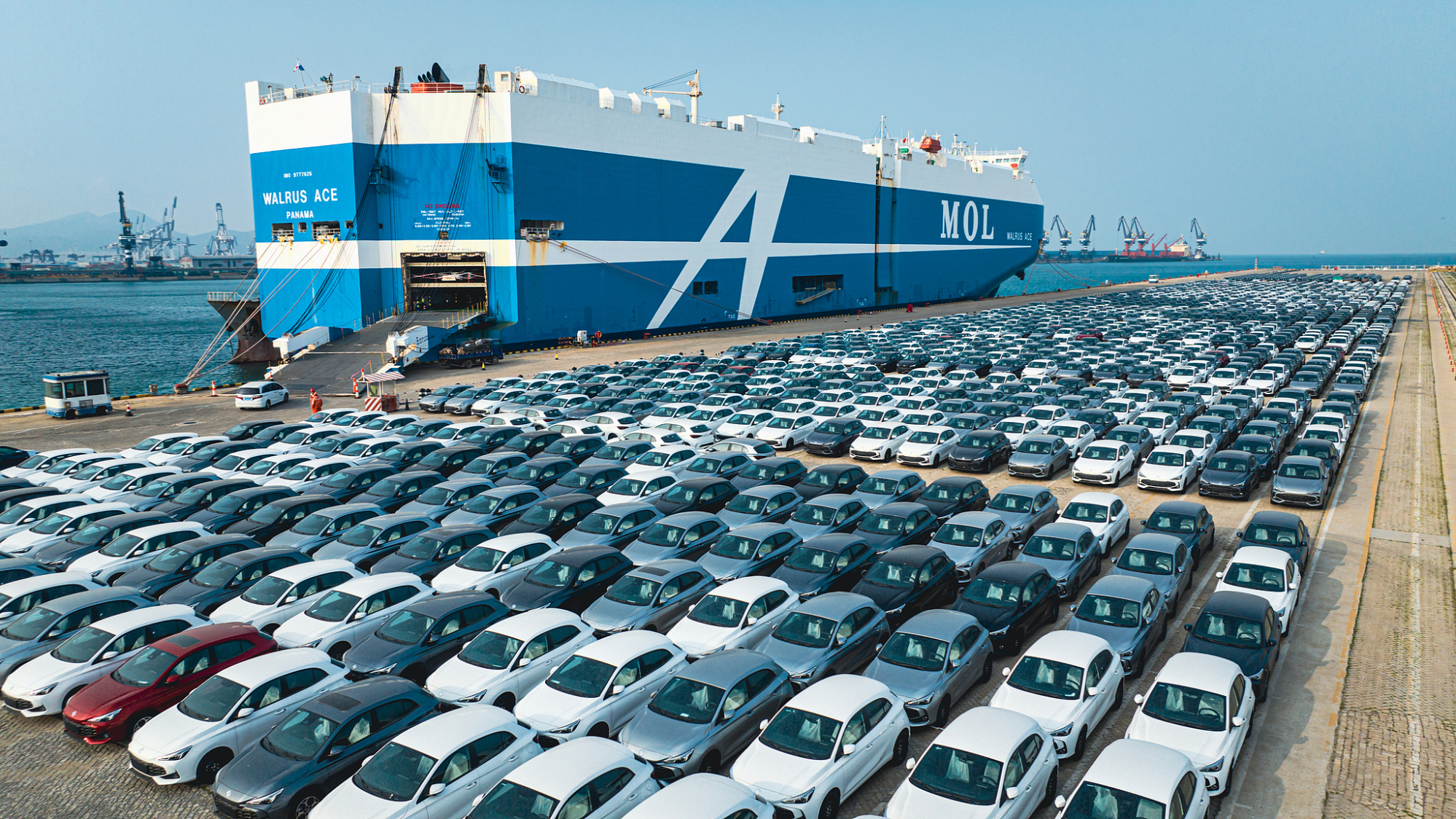 घरेलू स्तर पर निर्मित हजारों कारें चीन के शानतुंग प्रांत के यानथाई बंदरगाह पर पहुंचीं